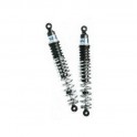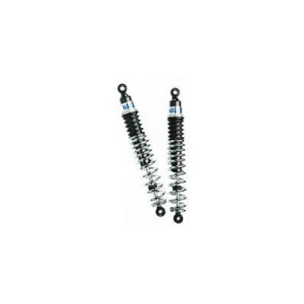 HAGON Trail Shocks Kawasaki KL250 - Suzuki DR 400S - 500, featuring Black body with twin spring (2 Step). Progressive action springs, with adjustable preload (conventional stepped spring adjuster). Double-sealed nitrogen cell, with automatic compression & rebound damping control. Adjuster spanner included. 2-Year unlimited mileage guarantee.